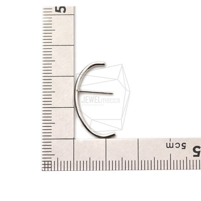 ERG-1675-R/2PCS/Half Round Post Earring/11mm X 25mm/Rhodium Plated Over Brass