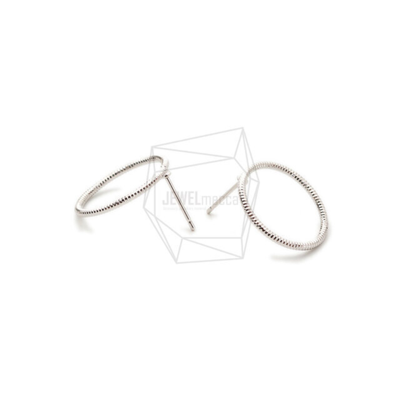 ERG-1682-R/2Pcs-Round Ear Post/ 18mm x 18mm /Rhodium Plated over Brass