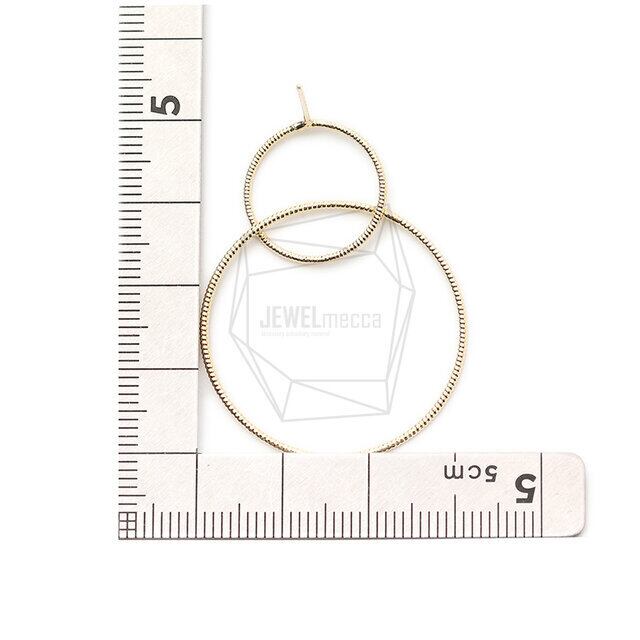 ERG-1685-G/2PCS/Double Linked Rings Post Earring/30mm X 40mm/Gold Plated Over Brass