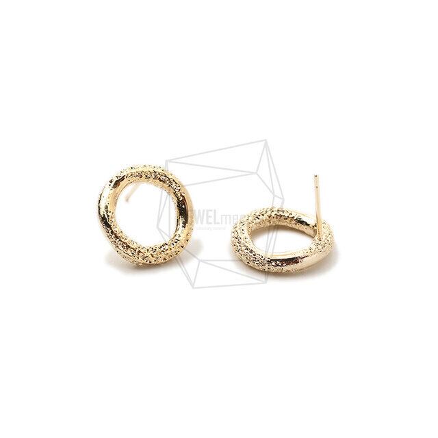 ERG-1689-G/2Pcs-Round Ear Post/15mm x 15mm/Gold Plated over Brass