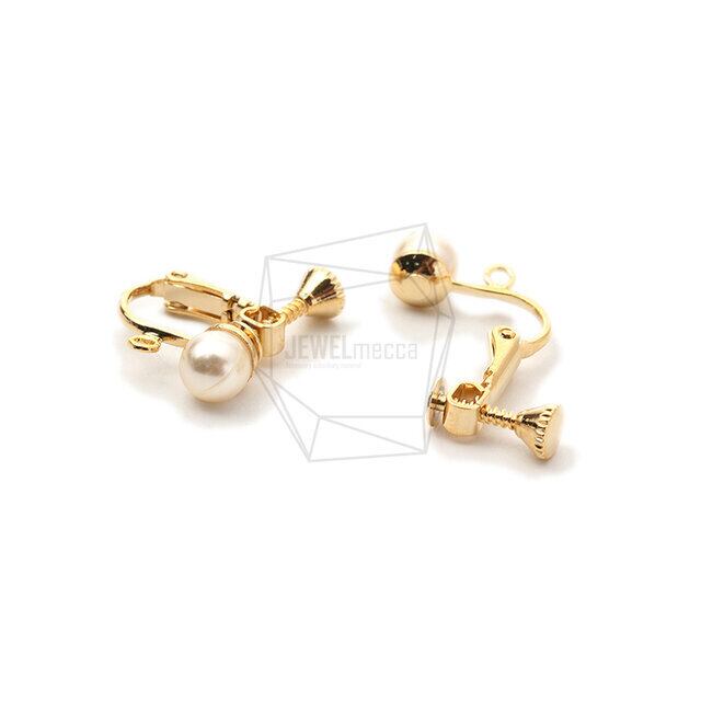 ERG-1690-G/2Pcs/Pearl Earring/Non Pierced Screw Back Clips Earring/ 16mm x 18mm /Gold Plated over Brass,imitation pearl