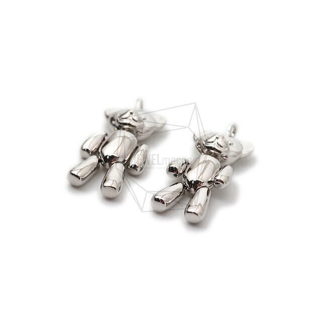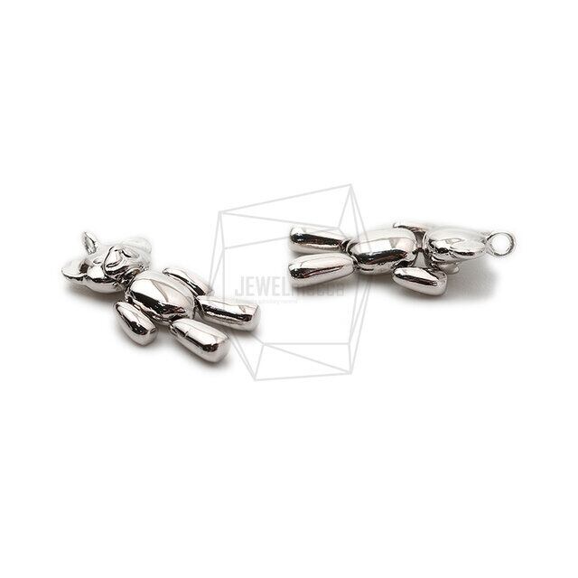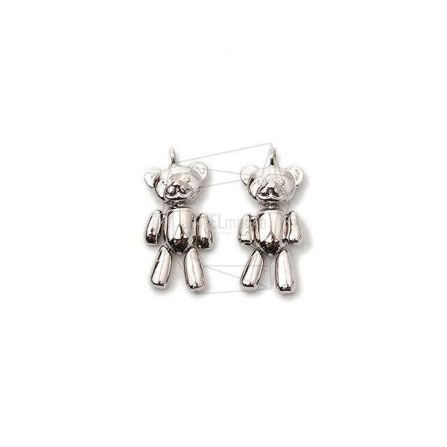 PDT-2444-R/1PCS/Teddy Bear Pendant/10mm x 20mm/Rhodium Plated Over Brass