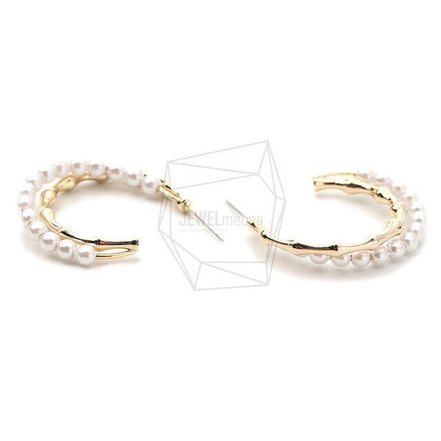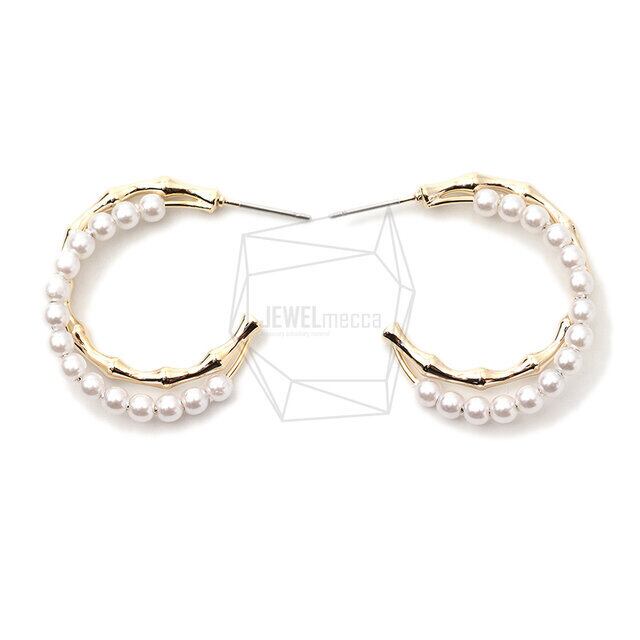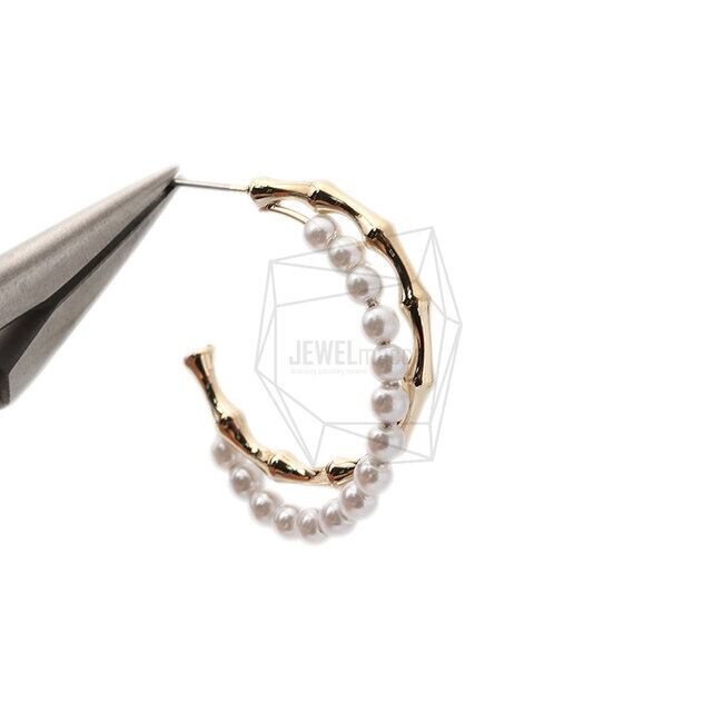 ERG-1691-G/2PCS/Pearl C shape Post Earring /25mm X 28mm/Gold Plated Over Brass,Imitation pearl, Stainless Post