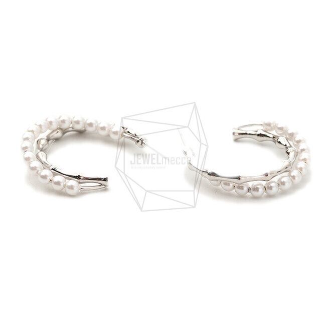 ERG-1691-R/2PCS/Pearl C shape Post Earring /25mm X 28mm/Rhodium Plated Over Brass,Imitation pearl, Stainless Post