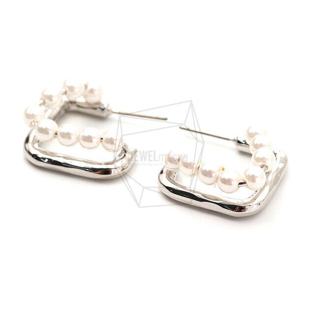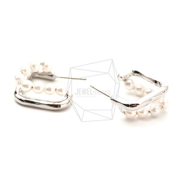 ERG-1692-R/2PCS/Pearl C shape Post Earring /20mm X 20mm/Rhodium Plated Over Brass,Imitation pearl,Titanium post