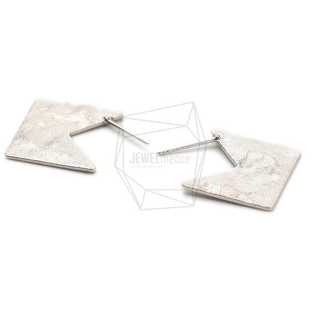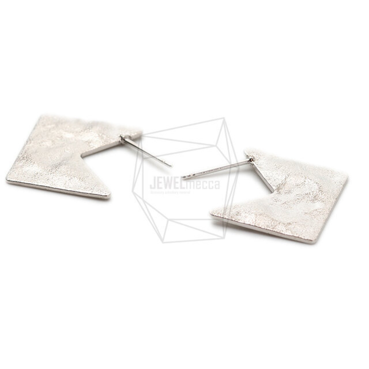 ERG-1694-R/2PCS/Truncated square Post Earring /16mm x 18mm/Rhodium Plated over Brass