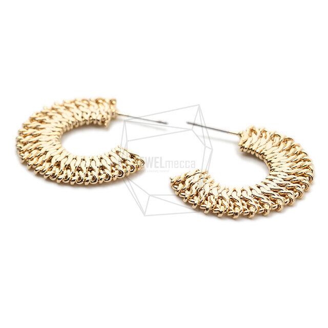 ERG-1696-G/2Pcs-Round Ear Post/ 22mm x 28mm /Gold Plated over Brass,Stainless Post