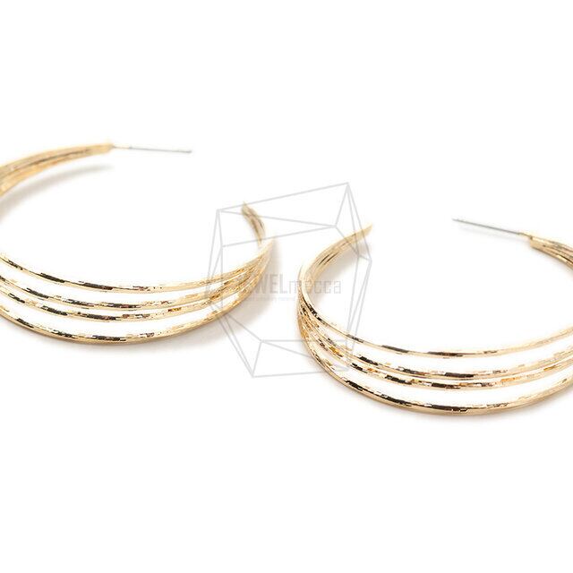 ERG-1697-G/2Pcs-Round Ear Post/ 40mm x 40mm /Gold Plated over Brass,Stainless Post