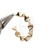 ERG-1702-G/2PCS/Wave Round Ear Post/ 33mm x 36mm/Gold Plated Over Brass,Stainless Post