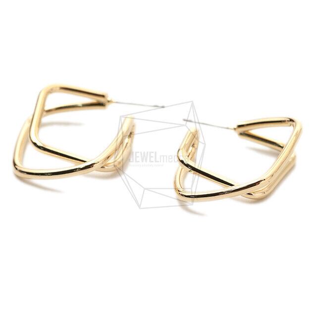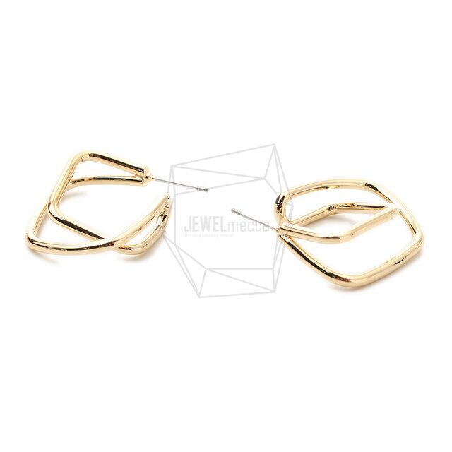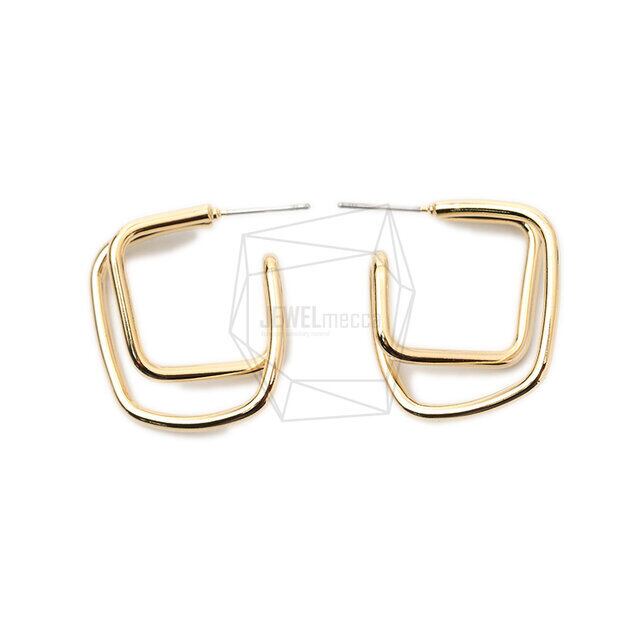 ERG-1703-G/2PCS/Double Round Post Earring/22mm X 26mm/Gold Plated Over Brass,Stainless Post