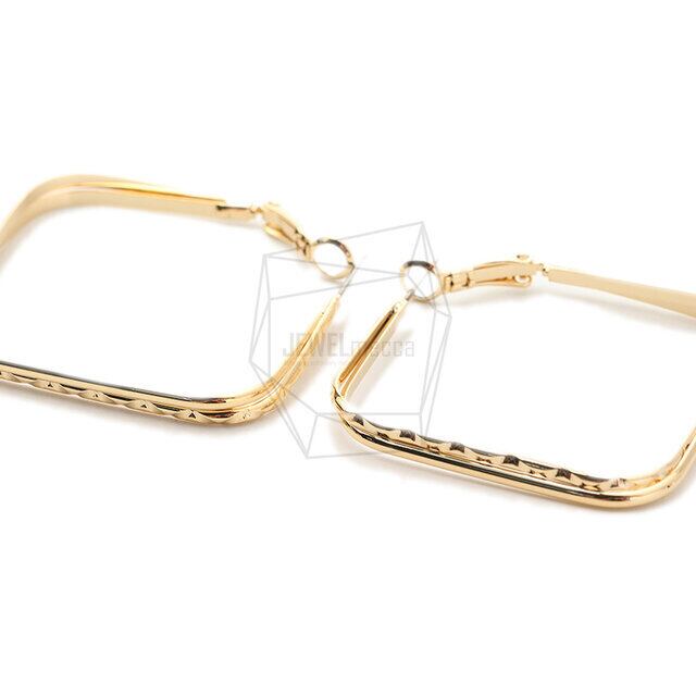 ERG-1705-G/2PCS/Double Square Post Earring/40mm X 40mm/Gold Plated Over Brass,Stainless Post