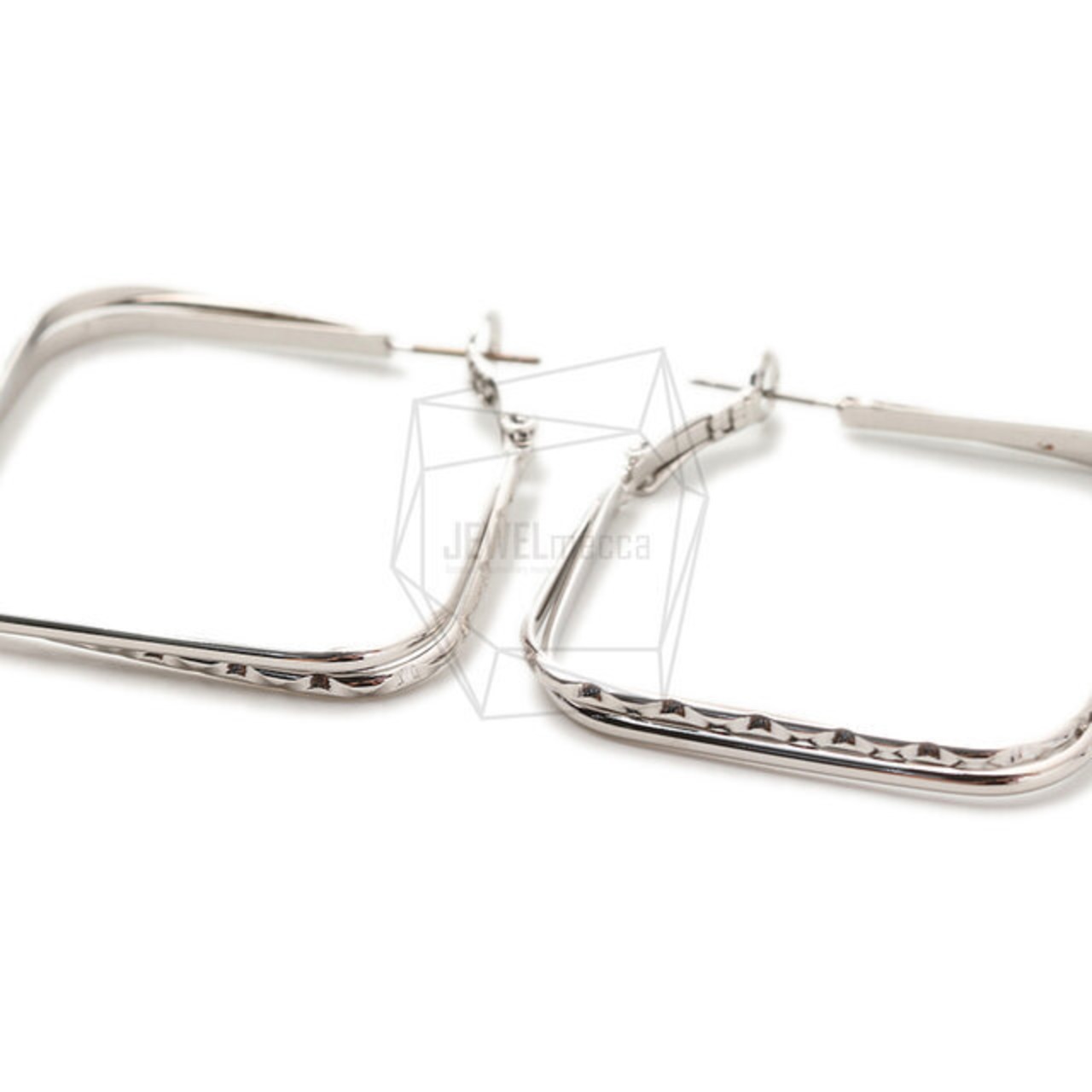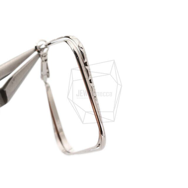 ERG-1705-R/2PCS/Double Square Post Earring/40mm X 40mm/Rhodium Plated Over Brass,Stainless Post