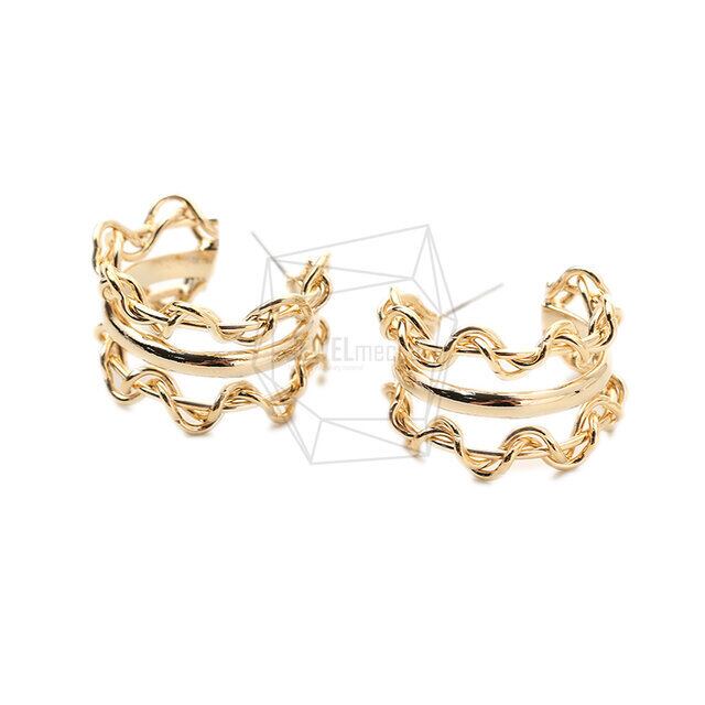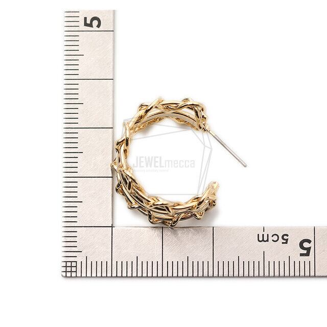 ERG-1706-G/2PCS/Wave Round Ear Post/ 20mm x 24mm/Gold Plated Over Brass,Stainless Post
