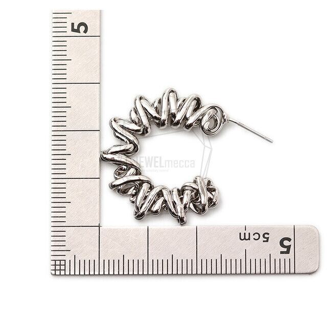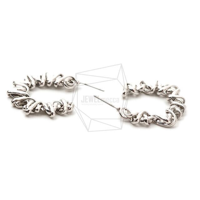 ERG-1712-R/2PCS/spring round Post Earring/26mm X 29mm/Rhodium Plated Over Brass,Stainless Post