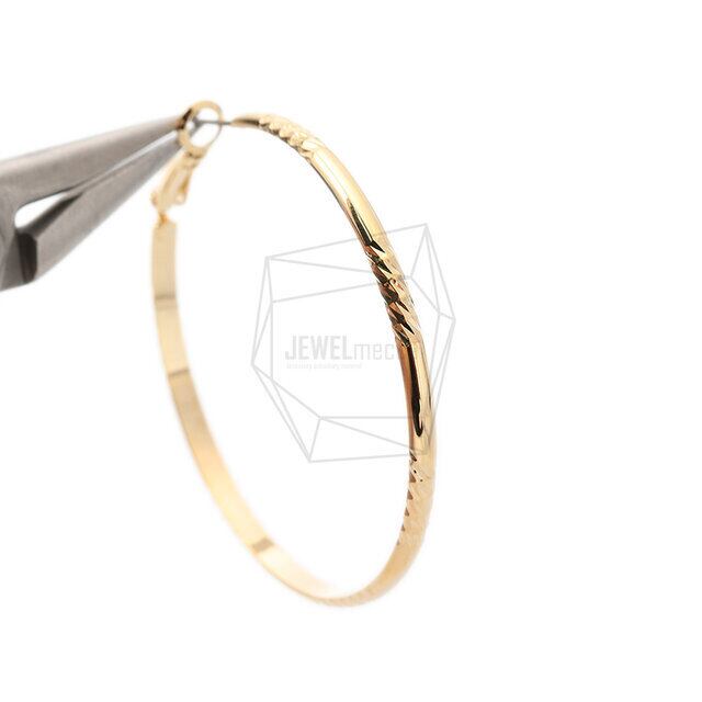 ERG-1713-G/2Pcs-Round Ear Post/ 50mm x 50mm /Gold Plated over Brass,Stainless Post