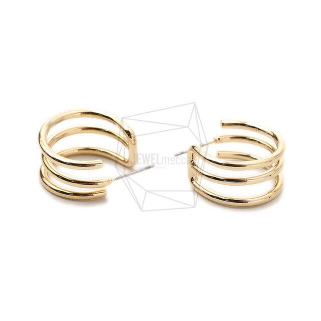 ERG-1714-G/2PCS/Double round Post Earring/20mm X 20mm/Gold Plated Over Brass, Stainless Post