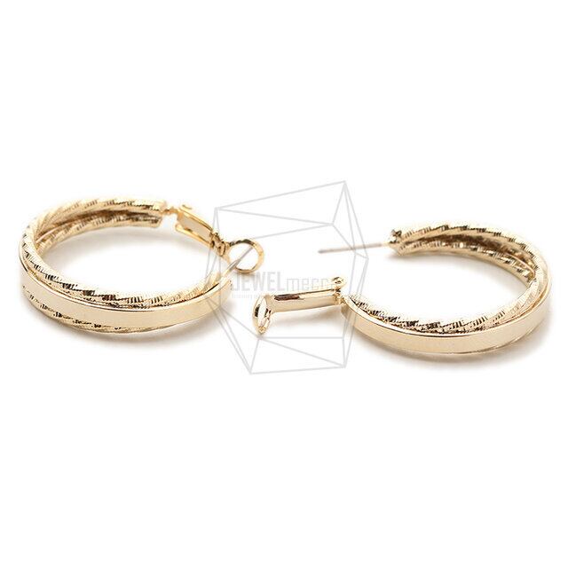 ERG-1719-G/2Pcs-Round Ear Post/ 40mm x 40mm /Gold Plated over Brass,Titanium post