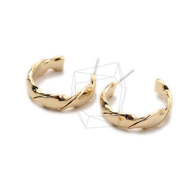 ERG-1721-G/2Pcs-Round Ear Post/ 20mm x 23mm /Gold Plated over Brass,Titanium post