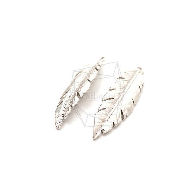 PDT-2457-MR/2Pcs-Leaf Pendant/ 8mm x 30mm/Matte Rhodium Plated Over Brass