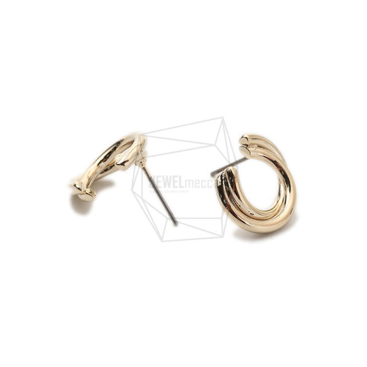ERG-1726-G/2Pcs-Round Ear Post/ 14mm x 15mm /Gold Plated over Brass,Stainless Post