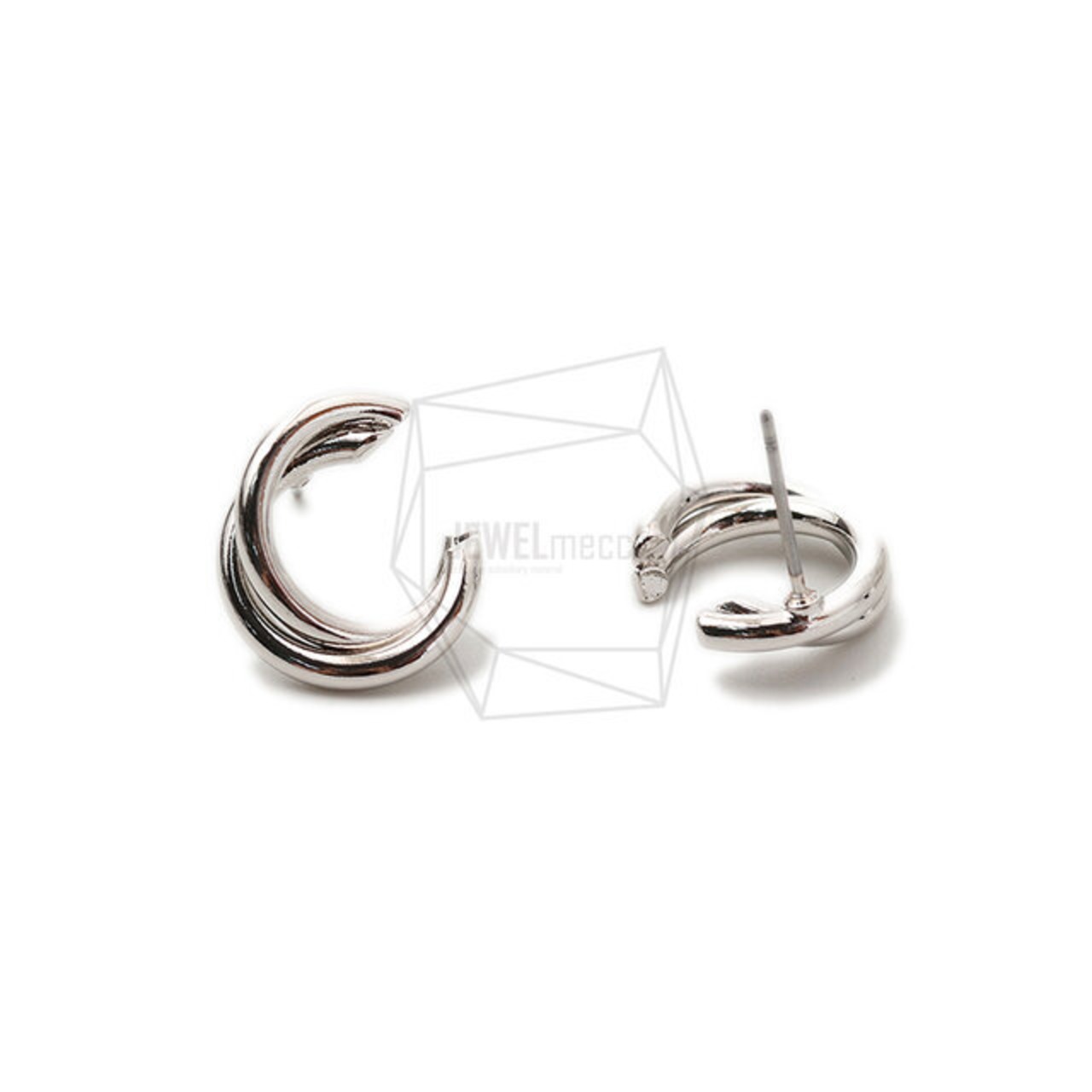 ERG-1726-R/2Pcs-Round Ear Post/ 14mm x 15mm /Rhodium Plated over Brass,Stainless Post