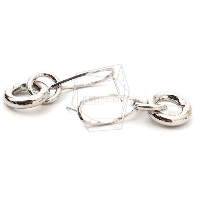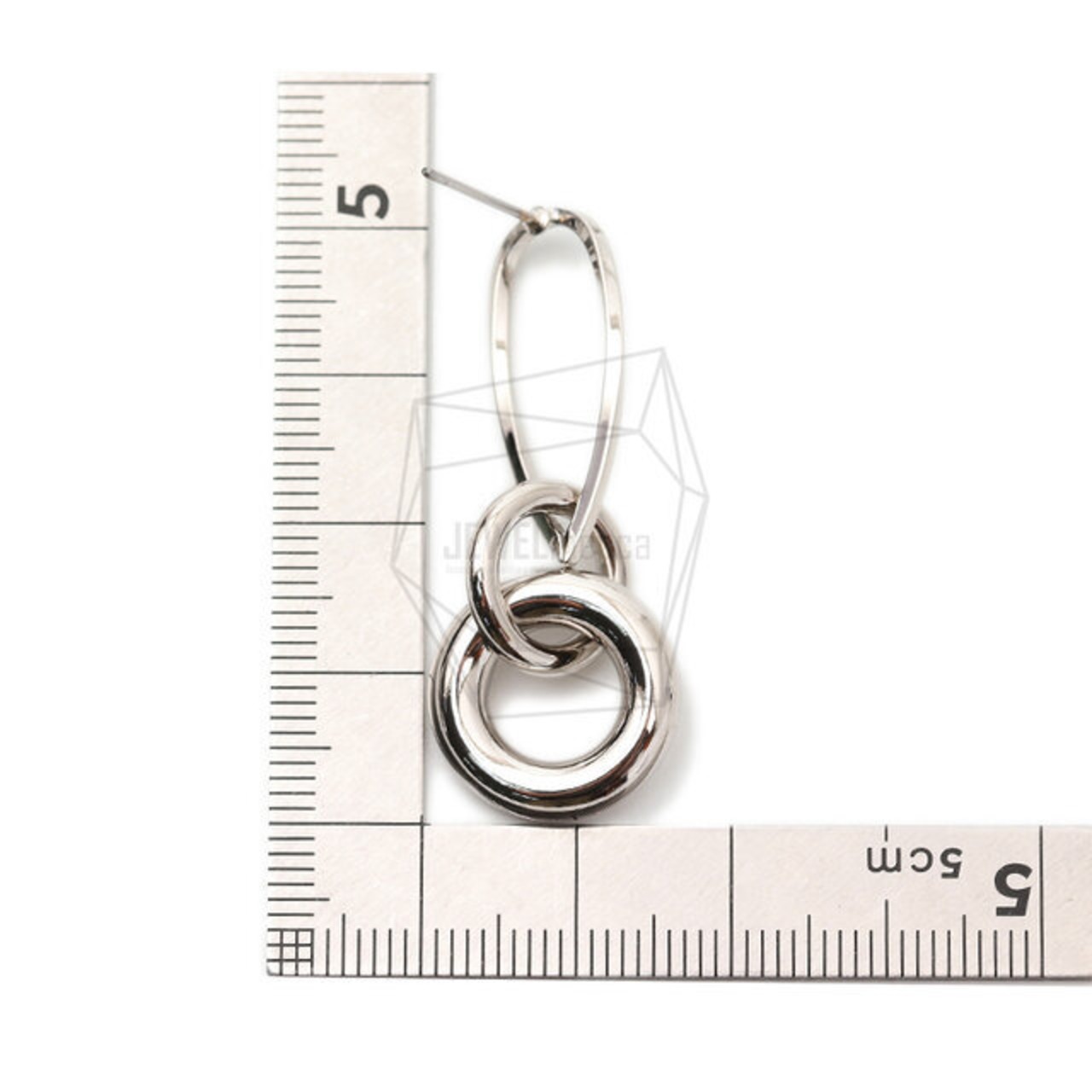 ERG-1728-R/2Pcs-Multi Round Links Post Earring / 16mm x 42mm /Rhodium Plated over brass,Stainless Post