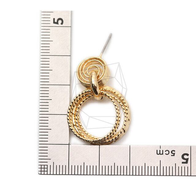 ERG-1729-G/2Pcs-Multi Round Links Post Earring / 20mm x 30mm /Gold Plated over brass,Stainless Post
