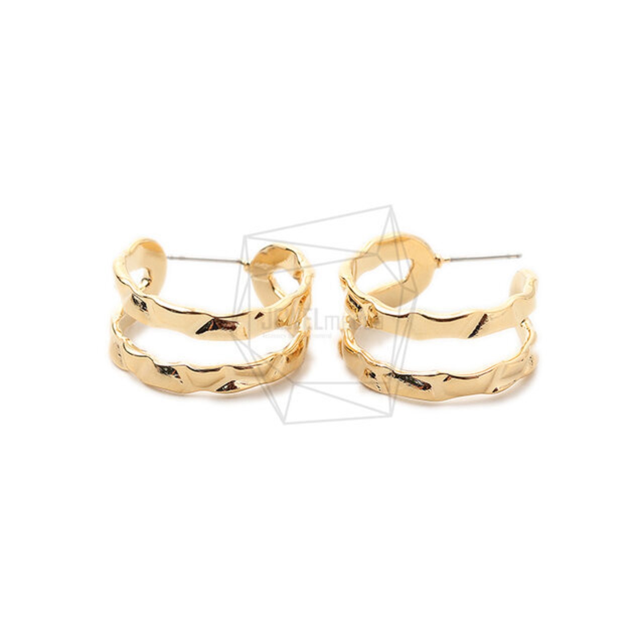 ERG-1732-G/2PCS/Double Round Post Earring/23mm X 26mm/Gold Plated Over Brass,Stainless Post