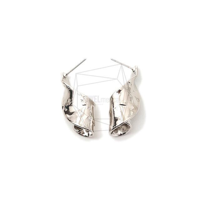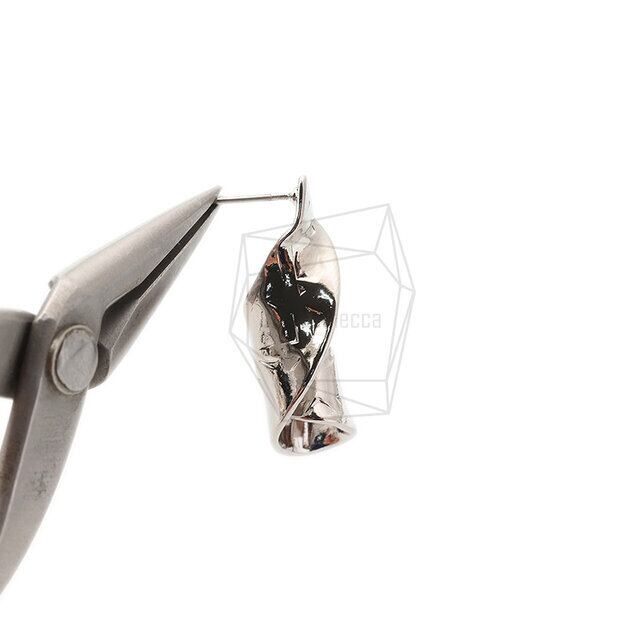 ERG-1735-R/2PCS/Twist Round Post Earring/10mm X 29mm/Rhodium Plated Over Brass, Stainless Post