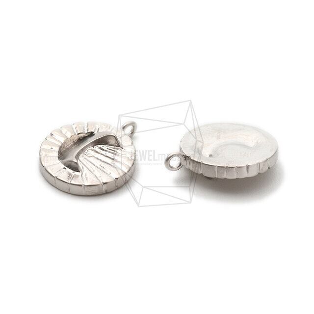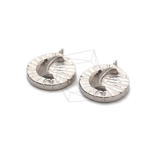 PDT-2458-MR/2Pcs-Moon Fossil Pendant/ 15mm x 17mm /Matte Rhodium Plated over brass