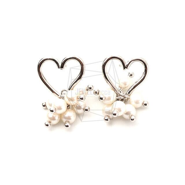 ERG-1737-R/2PCS/Heart Earring Post/18mm x 28mm/Rhodium Plated over Brass/Titanium post,Imigration Pearl