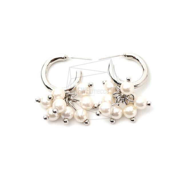 ERG-1738-R/2PCS/Heart Earring Post/18mm x 32mm/Rhodium Plated over Brass/Titanium post,Imigration Pearl