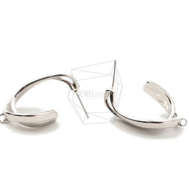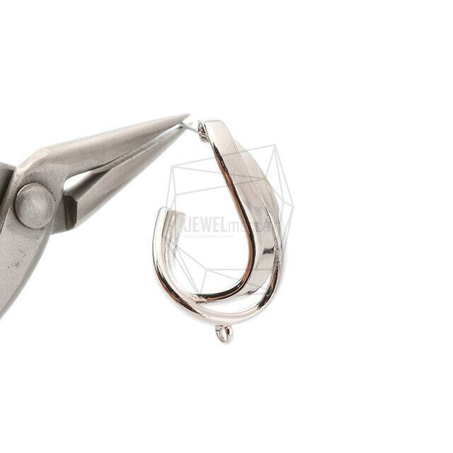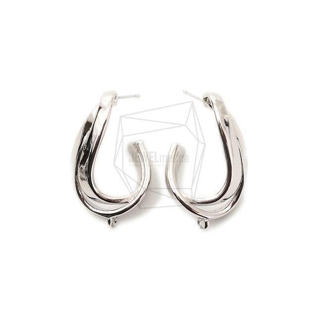 ERG-1739-R/2PCS/Hammered L Shape Earring /19mm x 32mm/Rhodium Plated Over Brass/Stainless Post