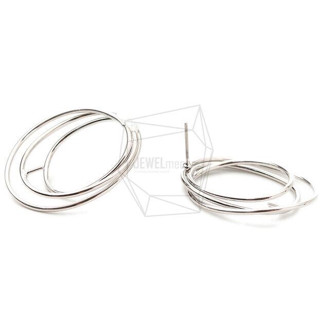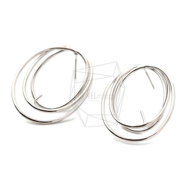 ERG-1740-R/2PCS/Double round Post Earring/23mm X 31mm/ Rhodium Plated Over Brass, Titanium post