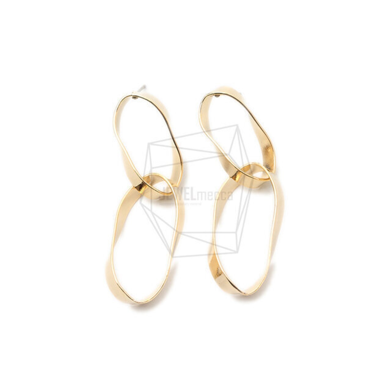 ERG-1742-G/2PCS/Hoop Link Ear Post/16mm x 53mm/Gold Plated over Brass,Titanium post