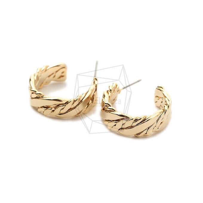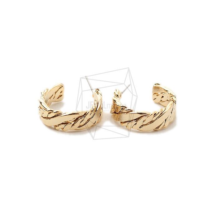 ERG-1743-G/2Pcs-Round Ear Post/ 20mm x 22mm /Gold Plated over Brass,Titanium post