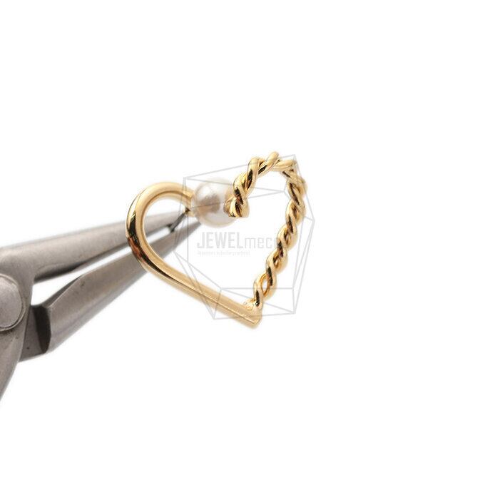 ERG-1745-G/2PCS/Pearl Heart Post Earring/19mm X 20mm/Gold Plated Over Brass,Imitation pearl,Titanium post
