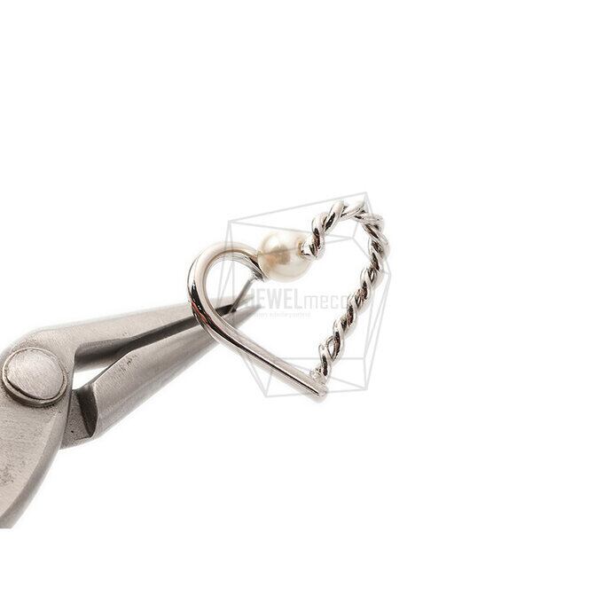 ERG-1745-R/2PCS/Pearl Heart Post Earring/19mm X 20mm/Rhodium Plated Over Brass,Imitation pearl,Titanium post