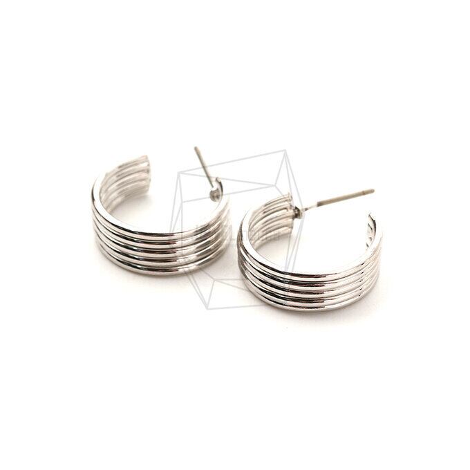 ERG-1749-R/2PCS/C shape Post Earring /15mm X 18mm/Rhodium Plated Over Brass,Titanium post