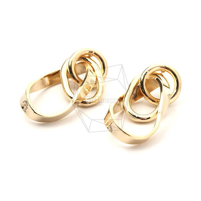 ERG-1751-G/2PCS/Triple Linked Round Post Earring/18mm X 38mm/Gold Plated Over Brass,Titanium post