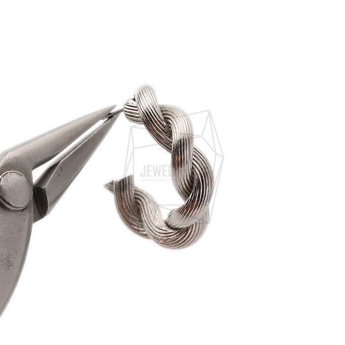 ERG-1765-R/2PCS/Twist Round Post Earring/24mm X 28mm/Rhodium Plated Over Brass, Stainless Post