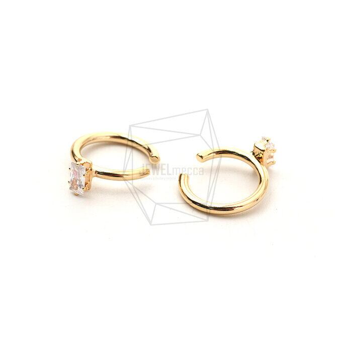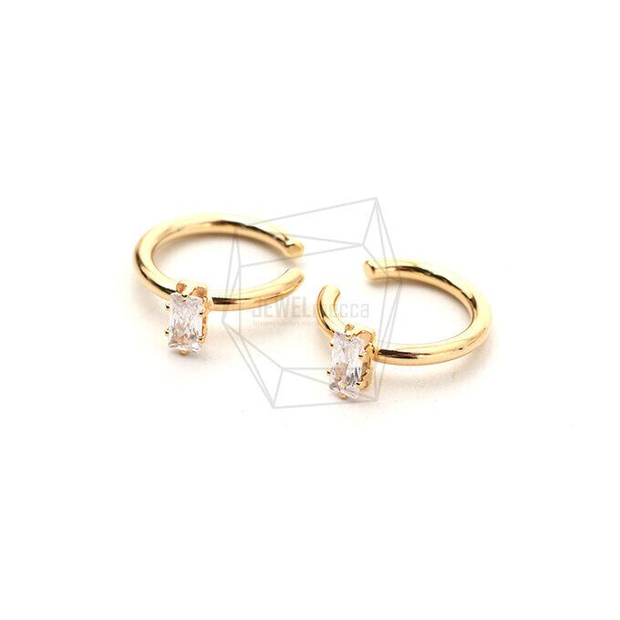 ERG-1769-G/2PCS/Round Earcuffs Earrings/16mm X 19mm/Gold Plated Over Brass,CZ