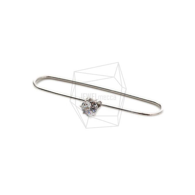 ERG-1770-R/2PCS/Round Earcuffs Earrings/10mm X 40mm/Rhodium Plated Over Brass,CZ