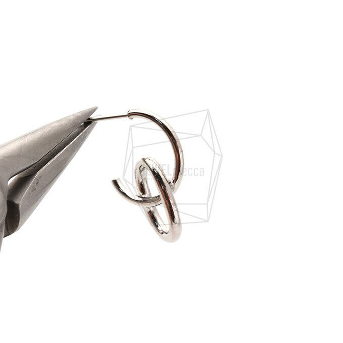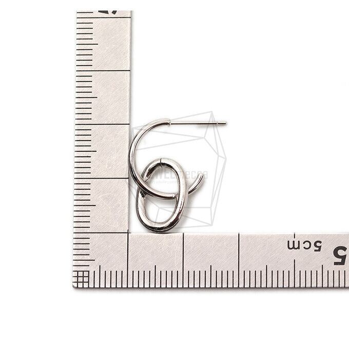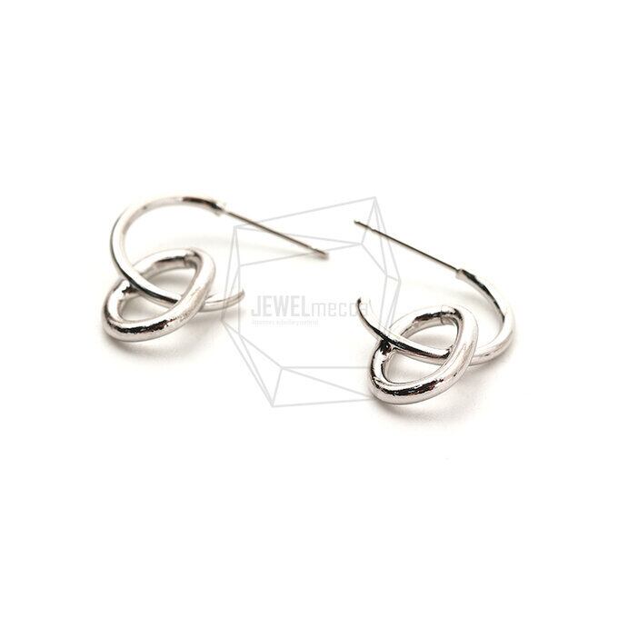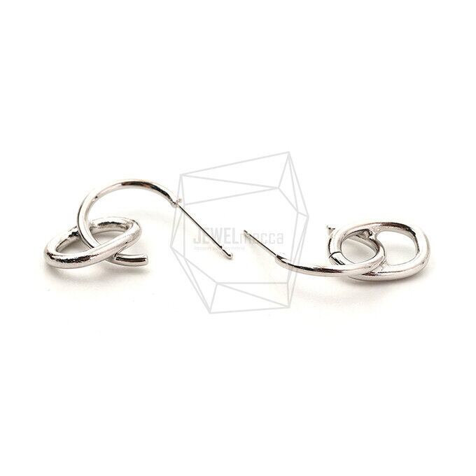 ERG-1787-R/2PCS/Linked Hoop Earring Post/14mm x 21mm/Rhodium Plated Over Brass