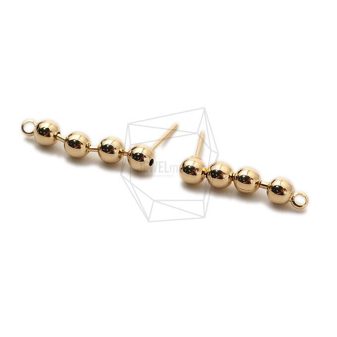 ERG-1790-G/2PCS/Ball Chain Earring Post/ 4mm x 23mm/Gold Plated over Brass