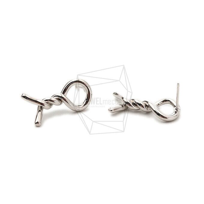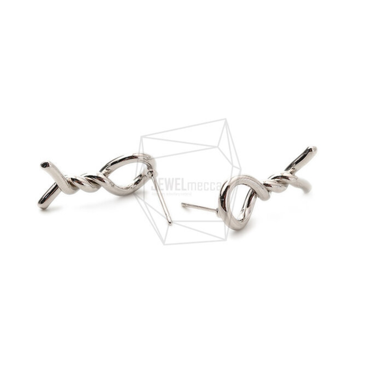 ERG-1791-R/2Pcs/Pretzel Post Earring /11mm x 22mm/Rhodium Plated Over Brass