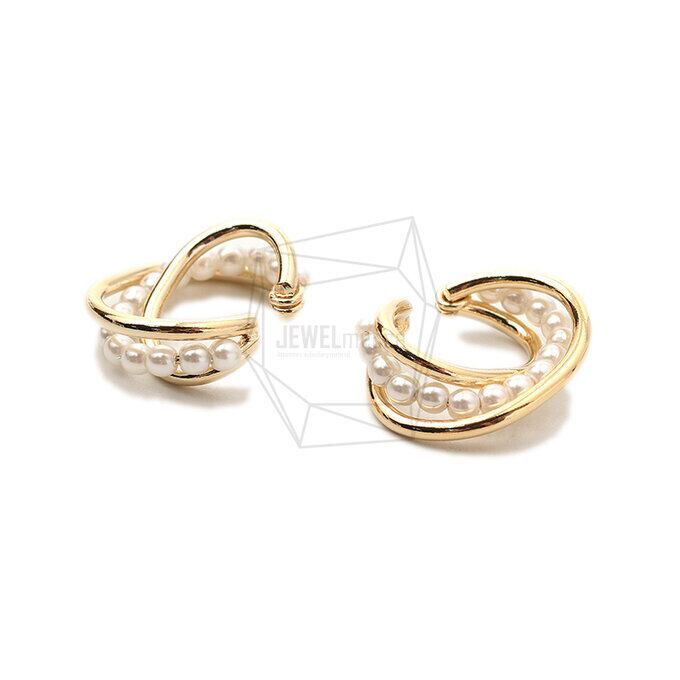 ERG-1796-G/2PCS/Round Earcuffs Earrings/20mm X 22mm/Gold Plated Over Brass,Imitation pearl