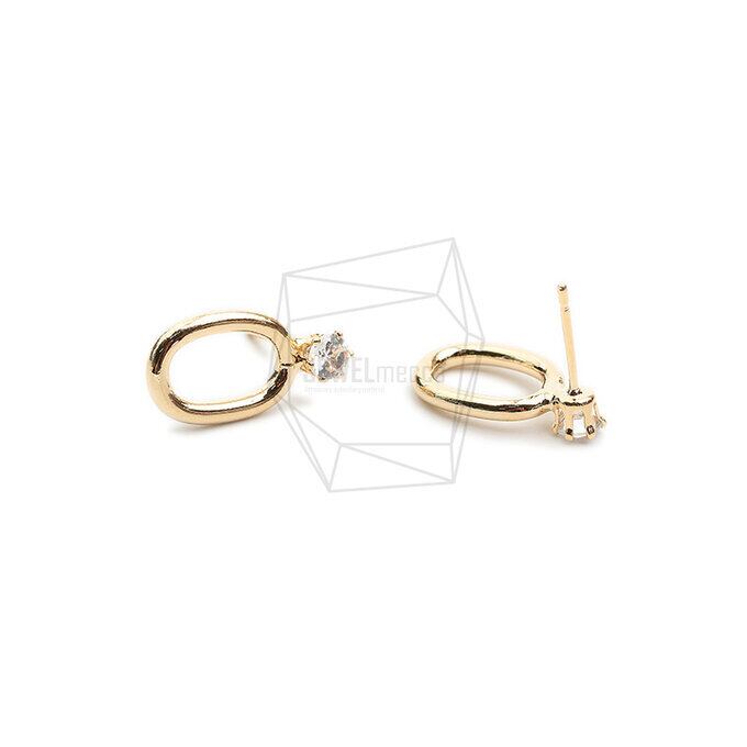 ERG-1801-G/2PCS/Circle CZ Earring Post/10mm x 18mm/Gold Plated over Brass,CZ