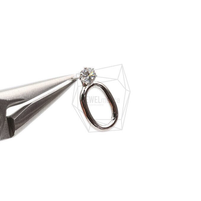 ERG-1801-R/2PCS/Circle CZ Earring Post/10mm x 18mm/Rhodium Plated over Brass,CZ