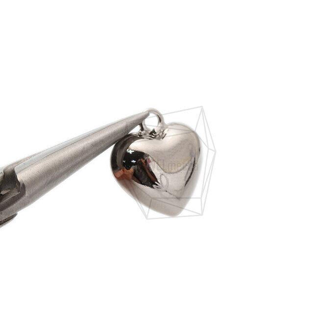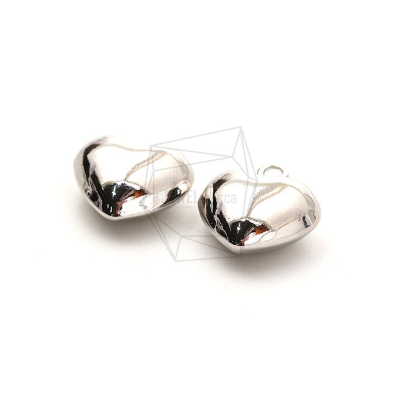 PDT-2470-R/2PCS/Heart Pendant/15mm X 16mm/Rhodium Plated Over Brass